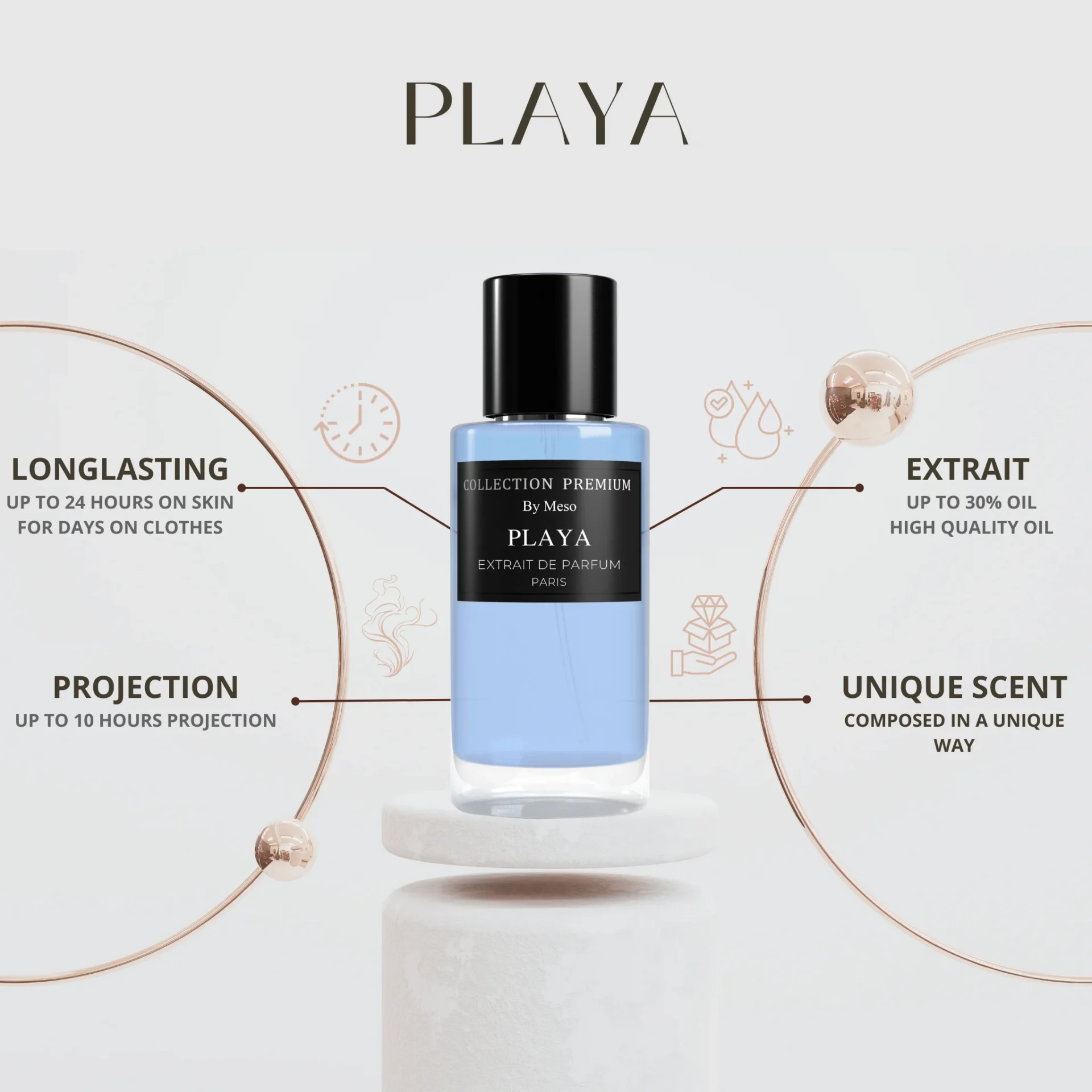 Playa is een meeslepende geur die complexiteit combineert met diepe oriëntaalse en houtachtige noten. Deze geur onthult zijn intrigerende karakter in verschillende lagen.