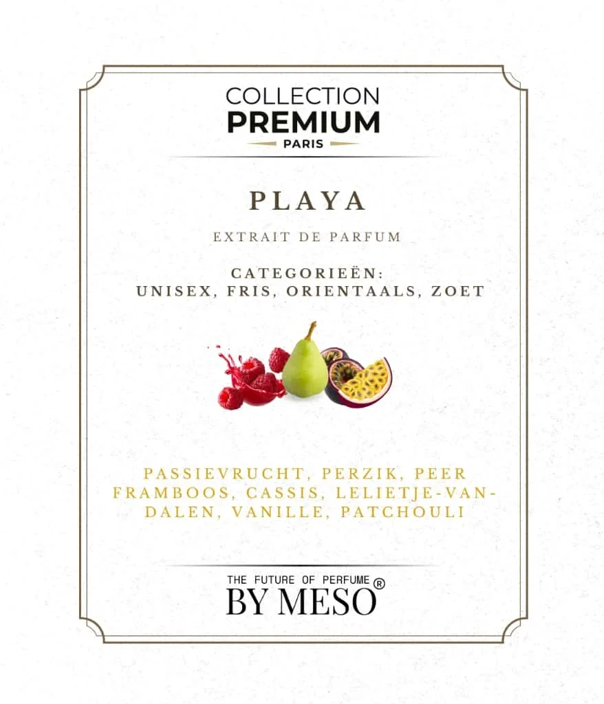 Playa heeft een diepgaand en intrigerend karakter dat de drager betovert en meeneemt op een olfactorische reis vol verrassingen en emotie. Het is niet zomaar een geur, het is een ervaring die de zintuigen prikkelt en de geest opent voor nieuwe horizonten. Kies Playa en laat jezelf onderdompelen in een geur die je uitdaagt en inspireert, en die je de kracht geeft om je eigen verhaal te schrijven. Het is een geur die spreekt van avontuur, mysterie en persoonlijke groei. Playa is de geur van de moderne ontdekkingsreiziger, de geur die je begeleidt op je reis naar ongekende bestemmingen
